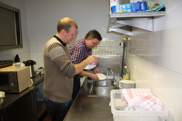Jan Thiele und Peter Kühling bei der Verköstigungsvorbereitung