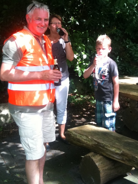 Pünktlich um 15.00 Uhr ist die Gruppe von ca. 30 kleinen und großen Radlern Richtung Bösel „Fladderborg“ gestartet. Auf der ca. 7 km langen Hinfahrt haben wir eine kleine Pause gemacht. Hier gab es für die kurzen Beine Erfrischungsgetränke.