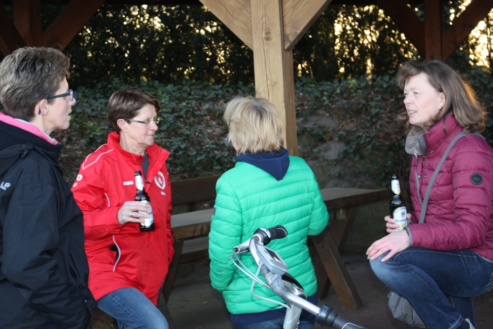 Der 1. Vorsitzende Antonius Rolf-Wittlake hatte vorher im Unterholz eine Kiste Bier und alkohlfreie Getränke gebunkert. Die Überraschung hat funktioniert. Es waren auch Genießerfrauen dabei, die ihren eigenen Champus dabei hatten. Stilsicher packten sie ihre formschönen Gläser aus und genossen die freie Natur. Das hatte Klasse, chapó, siehe Bild oben !!