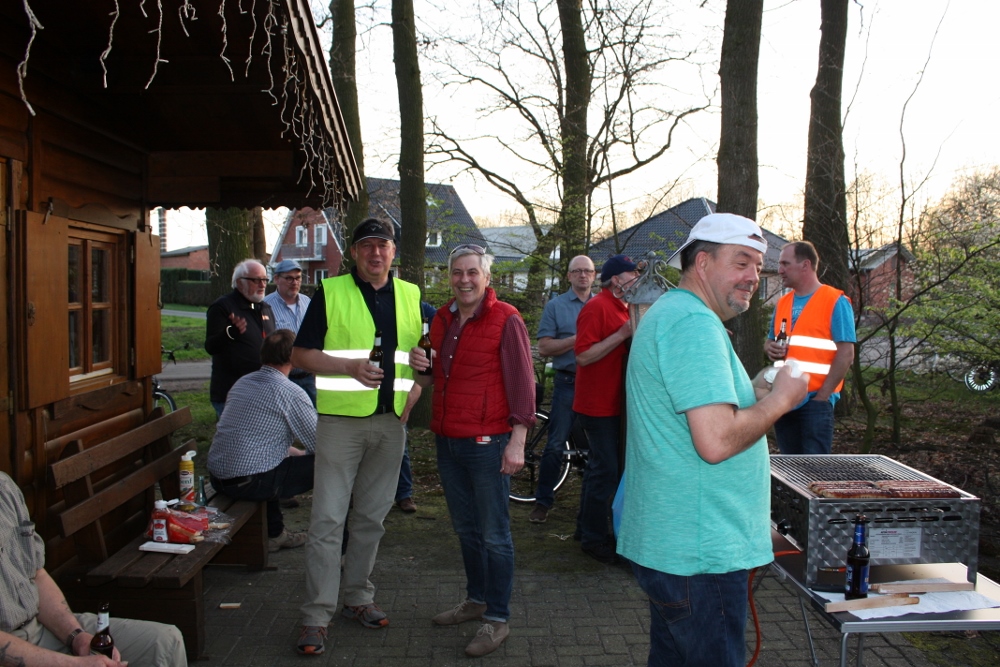 Das konnte der RSC auf keinen seiner Fahrten jemals verbuchen. 38 Teilnehmer kamen zur ersten Ausfahrt. Rolf Schrandt, Vorstandsmitglied, begrüßte die Teilnehmer und stellte in dem Zusammenhang die neuen Mitglieder des Vorstandes 2018 vor. Fahrtenleiter Olaf Brünen führte die große Gruppe in den Raum Talsperre bis hin nach Markhausen zur Eichenallee am Brink. Dort wurde eine exquisite Pause eingelegt. Ein toll gepflegter Platz der Anlieger wurde den Radlern zur Verfügung gestellt. Hierfür bedanken wir uns herzlichst bei der Familie Kösjan. Heinz Kösjan hat eigens für die halbstündige Pause in der Mitte ein kleines Feuer entfacht. Das Catering wurde perfekt von Jürgen Schneider vorbereitet und ausgeführt. Denn die Teilnehmer wurden mit Bratwurst und freien Getränken vom RSC überrascht.
