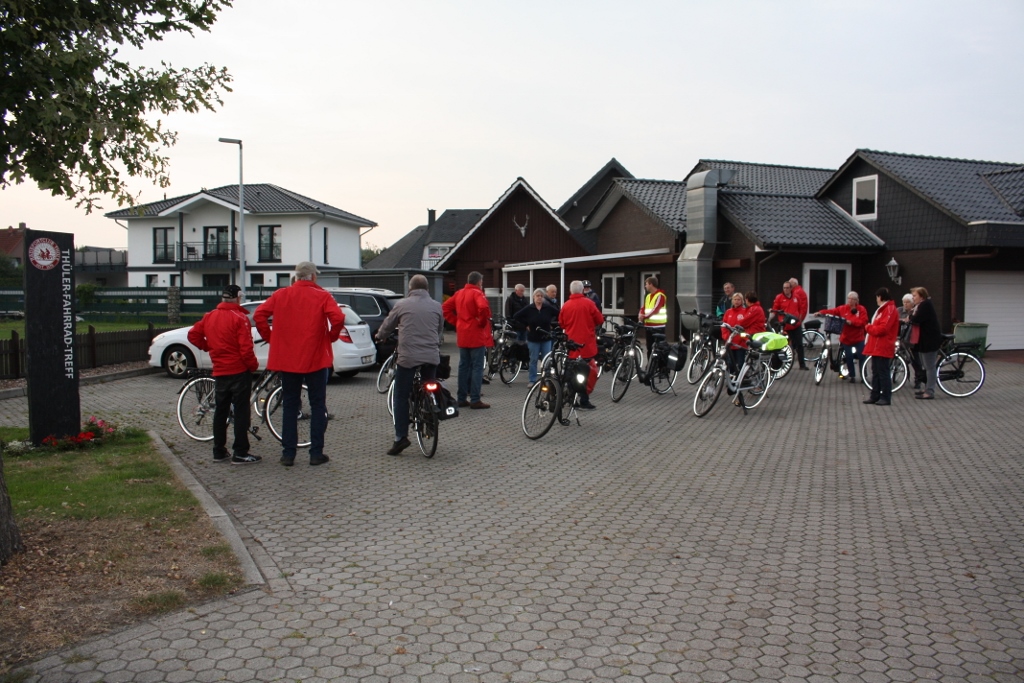 Aufgrund der Dötlingen Fahrt am 24. Juni 18 trafen sich beide Vereine erstmals in Hengstlage auf dem Heidesportplatz während einer Pause. Und so vereinbarte man sich zu einem Treffen zum Saisonabschluss beider Vereine in Nikolausdorf zu einem kleinen Plausch um 19:30 Uhr am 6. Sept. 18. Die Thüler waren zwar die Schnelleren aber mit 25 Sätteln konnte Hengstlage einen Radfahrer mehr aufweisen. Das allerdings war nur ein kleiner Stärkespass am Rande. Alle verstanden sich auf Anhieb prächtig, denn beide Vereine begrüßten sich bei Ankunft lautstark mit ihrer Vereinsgeste. Thüles Vorsitzender Antonius Rolf-Wittlake begrüßte Radlerlust Hengstlage aufs Herzlichste und hofft durchaus weitere Begegnungen in den nächsten Jahren ohne Druck anzustreben. "Wir haben Getränke dabei, laßt uns anstoßen und Danke, das ihr gekommen seid," so der Vorsitzende. Holger Arndt, dem Radlerlust Hengstlage vorstehend, bedankte sich ebenfalls für die tolle Zusammenkunft in Nikolausdorf und lud die Thüler im nächsten Jahr zum 40 jährigen Bestehen nach Hengstlage ein. Der Saisonplan ist zwar immer eng geschnürt wie bei euch auch aber hier und da sollte ein wenig Luft sein um dieses Trefffen zu wiederholen. Gegen 20:15 Uhr trennten sich dann ihre Wege und beide Vereine zog es nach Hause zum eigenen Saisonabschluss. Jan Thiele, schon in Nikolausdorf als Getränkeanlieferant anwesend, bereitete die 180 gr. Bratwürste bei Ankunft seiner Thüler Radler hinterm Vereinsheim hervorragend vor. Auch hier fand Antonius Rolf-Wittlake lobende Worte für die vergangene Saison. Er bestärkte die TFT Freunde die Generalversammlung am Samstag, dem 25. Januar 2019, zu besuchen. Dort würde sich jeder noch tiefere Eindrücke des RSC Thüle holen. Am kommenden Sonntag ( 9.Sept. ) ist für die angemeldeten Teilnehmer der 2. Tagestour nach Bourtange, in den Niederlanden, der Start pünktlich um 08:00 Uhr ab Vereinsheim Thüle. Das Team um Fahrtenleiter Olaf Brünen hat alles dafür getan um einen reibungslosen Ablauf zu gewährleisten.